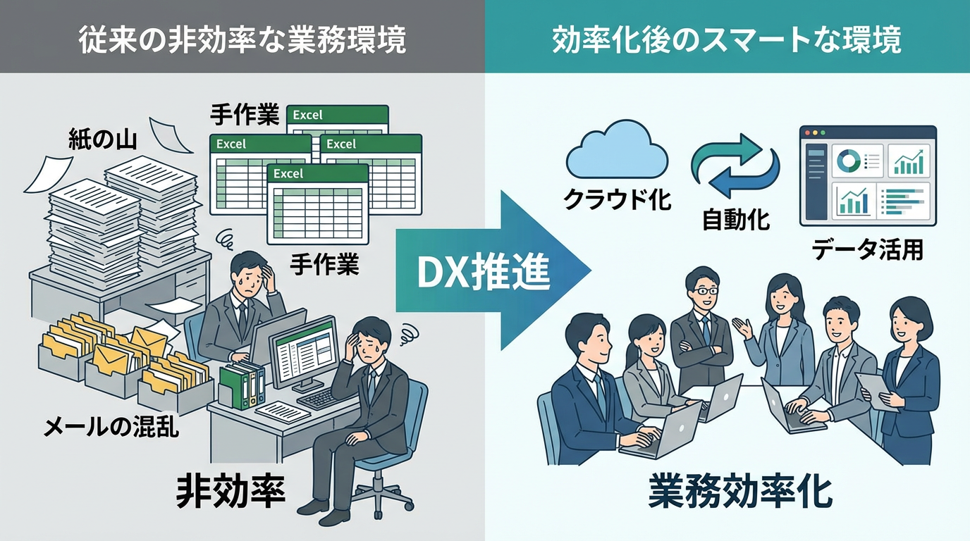 近年、多くの企業でDX(デジタルトランスフォーメーション)の推進が求められています。その中でも特に重要視されているのが「業務効率化」と「データ活用」です。しかし実際の現場では、属人化した業務やアナログ運用が残っており、本来活用できるはずのデータが十分に活かされていないケースも少なくありません。